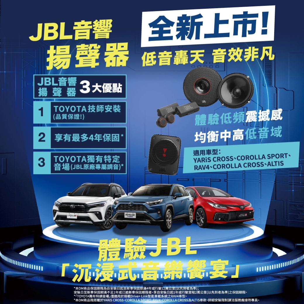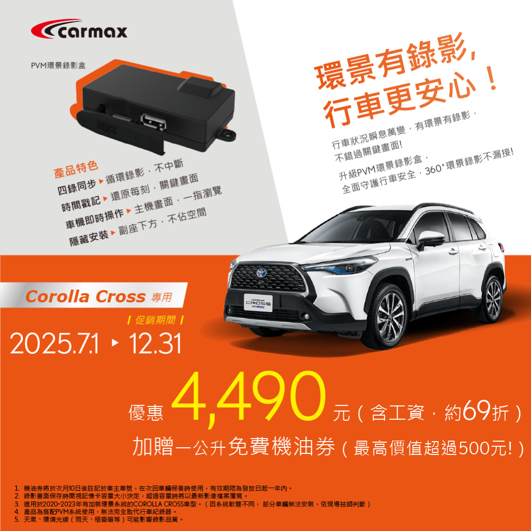 CARMAX Pro 行車紀錄器 83 折、JBL音響 85 折、60W 快充座 9 折、COROLLA CROSS PVM 錄影盒 73 折等,
