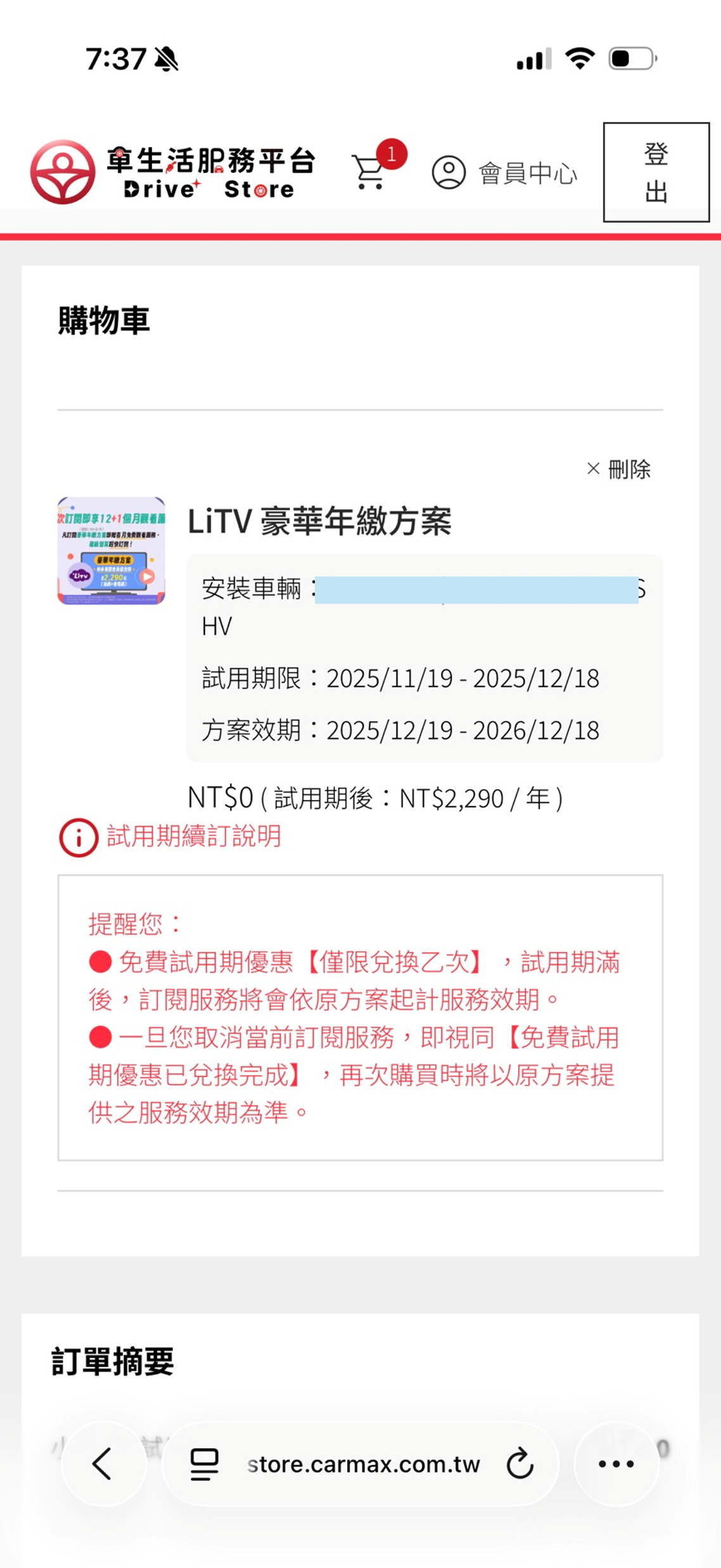 1. 於車生活服務平台搭載【LiTV 豪華年繳方案/月繳方案】,並且完成付款。 |
