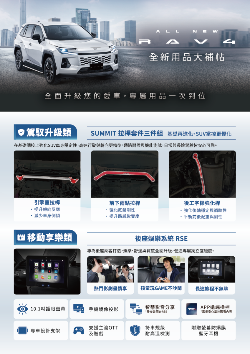 全新 RAV4 升級用品上市,幫車主打造更穩定、舒適、有型的愛車體驗!