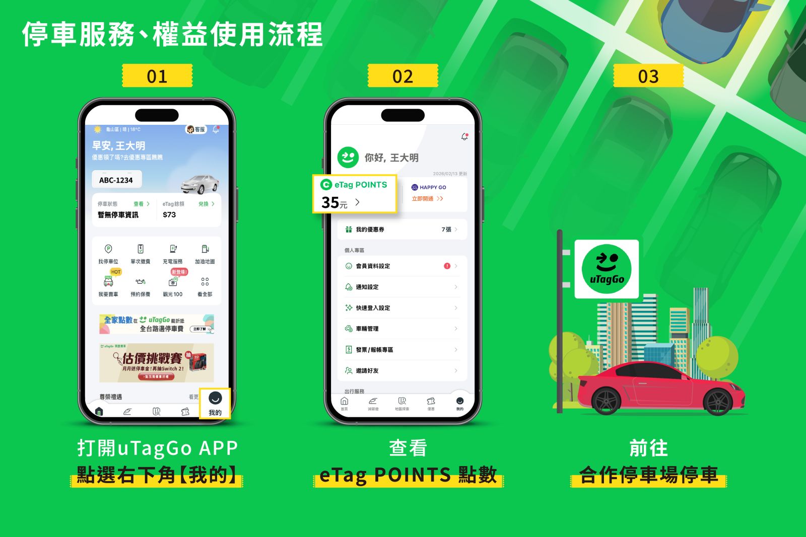 停車服務:訂閱即可獲得eTag POINTS $35,與uTagGo合作,全台涵蓋3000+以上的停車場。