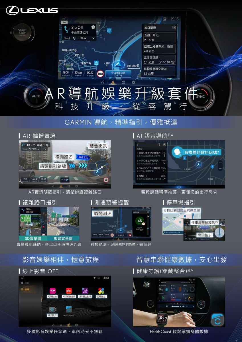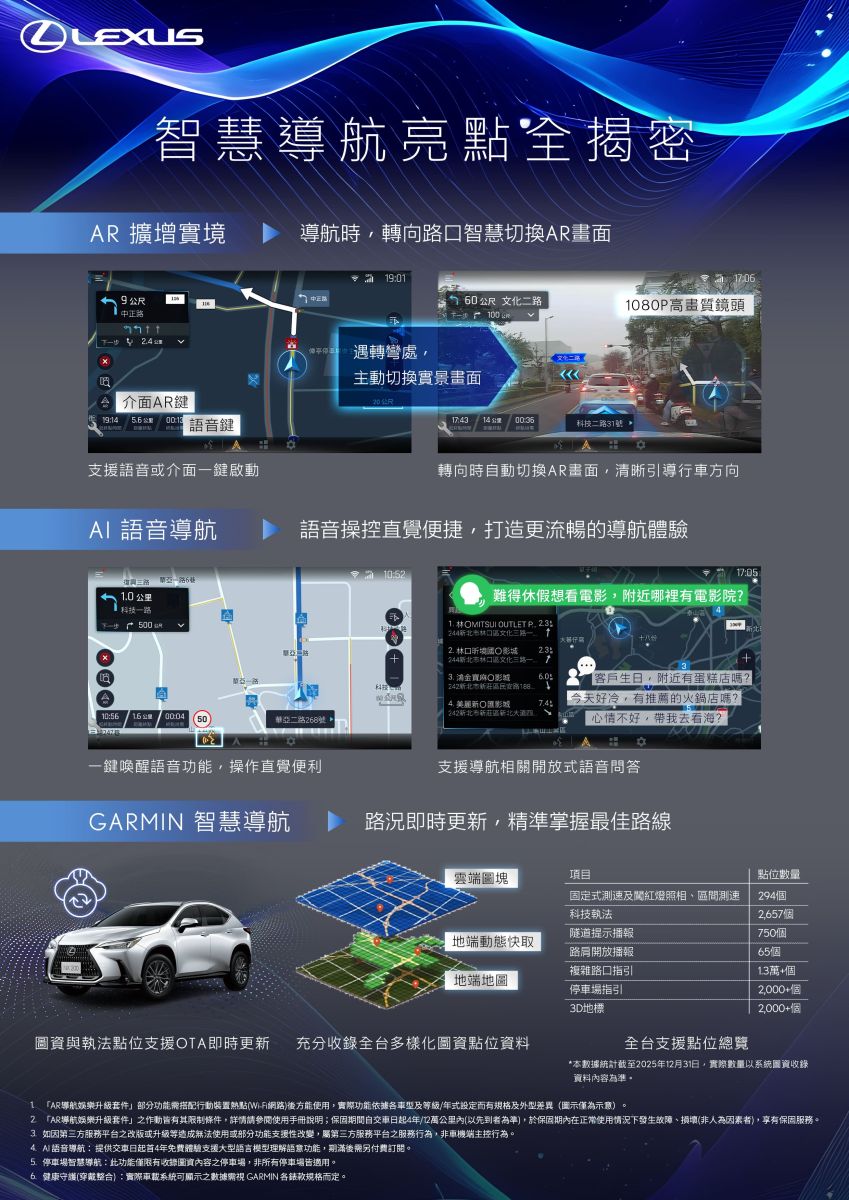 LEXUS NX AR導航娛樂升級套件,整合AR導航、AI語音與影音娛樂,打造更直覺流暢的行車體驗